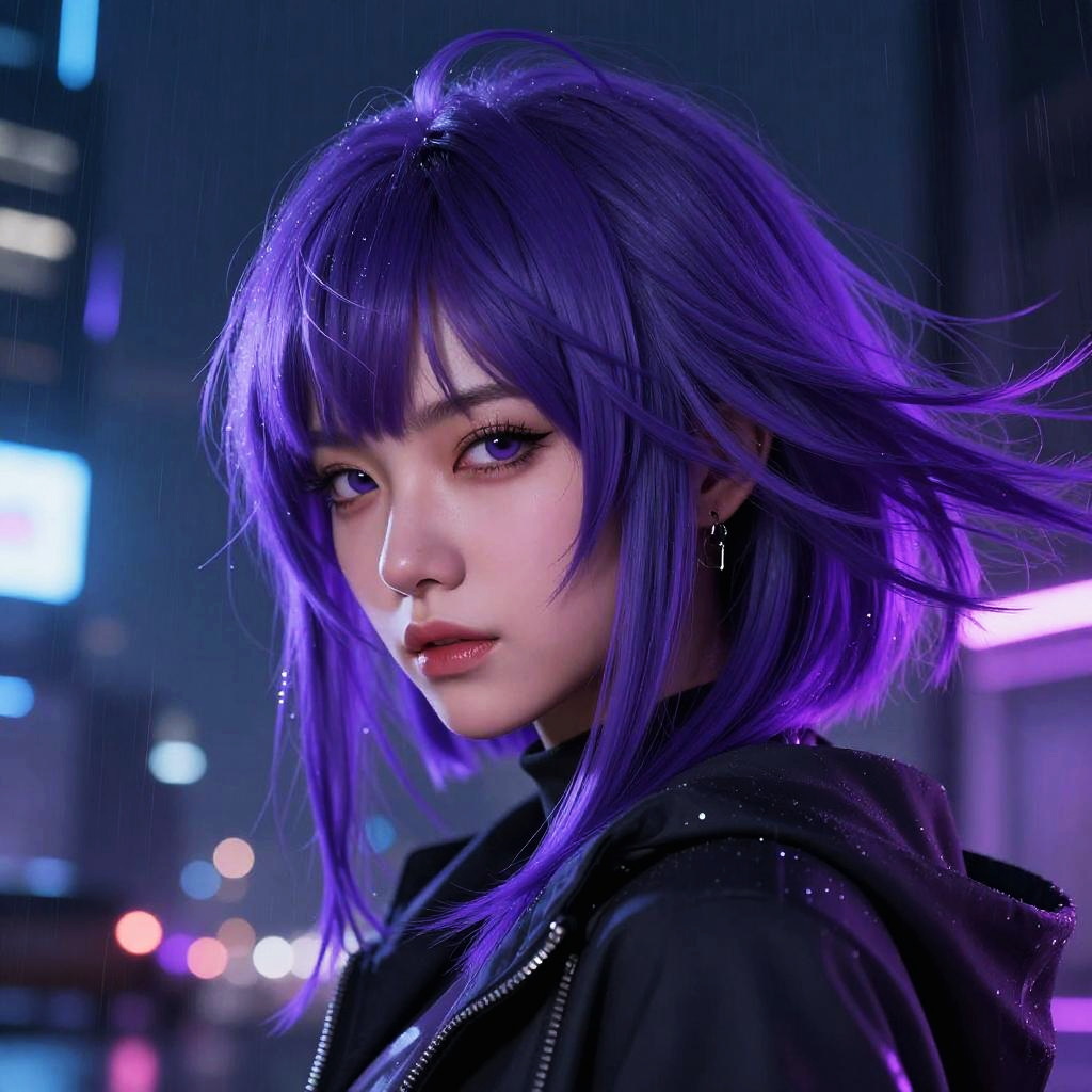Surreal Purple Wolfcut Nebula Style