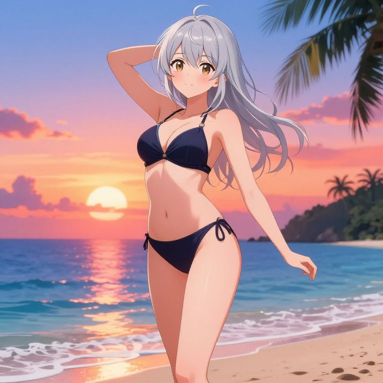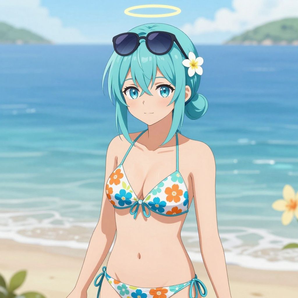 Anime Summer Beach Girl with Aqua Hair