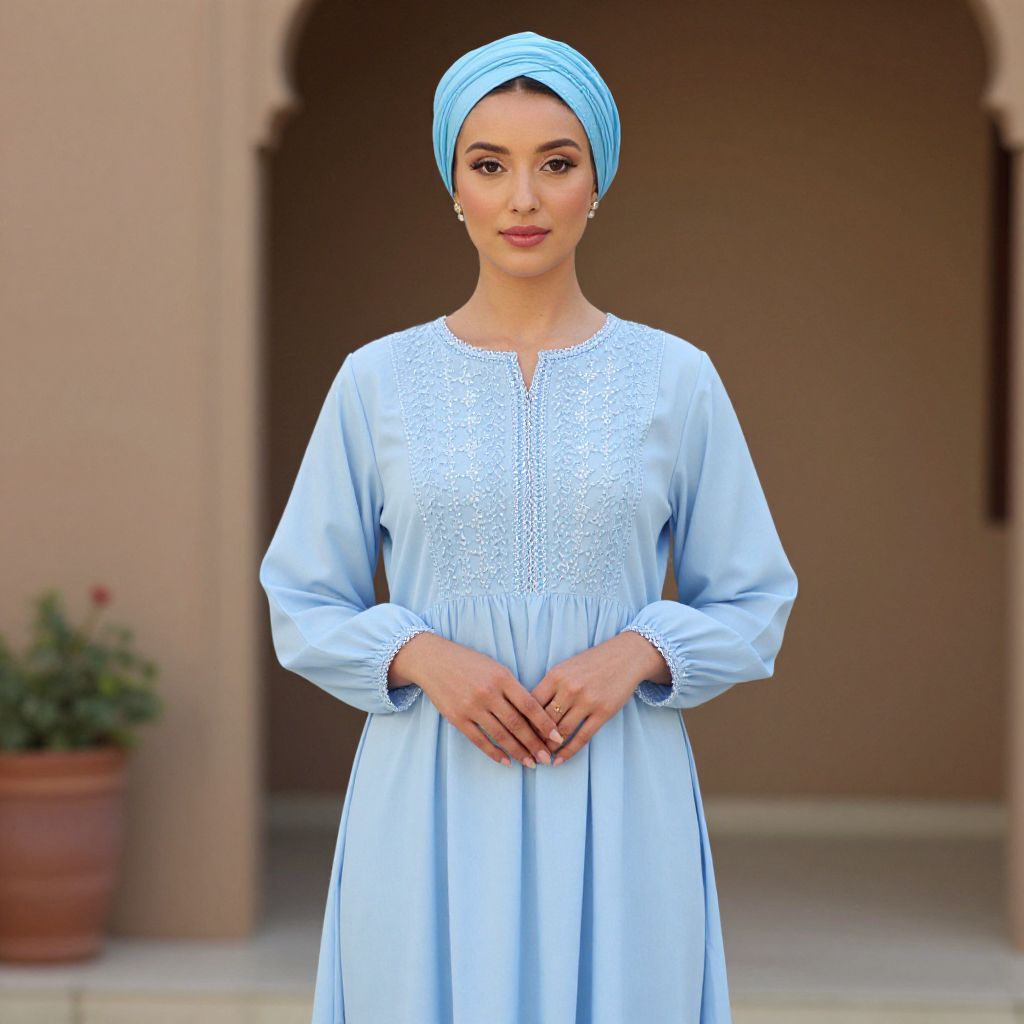 Woman in Sky Blue Dress and Turban