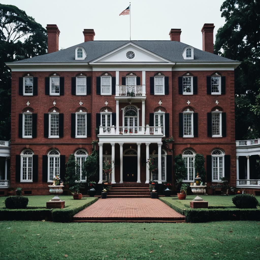 Wide shot exterior photo of a sprawling desert hacienda designed in Southwestern style with various decorations and personal items placed around the furniture using the material stucco and adobe - remix by.
