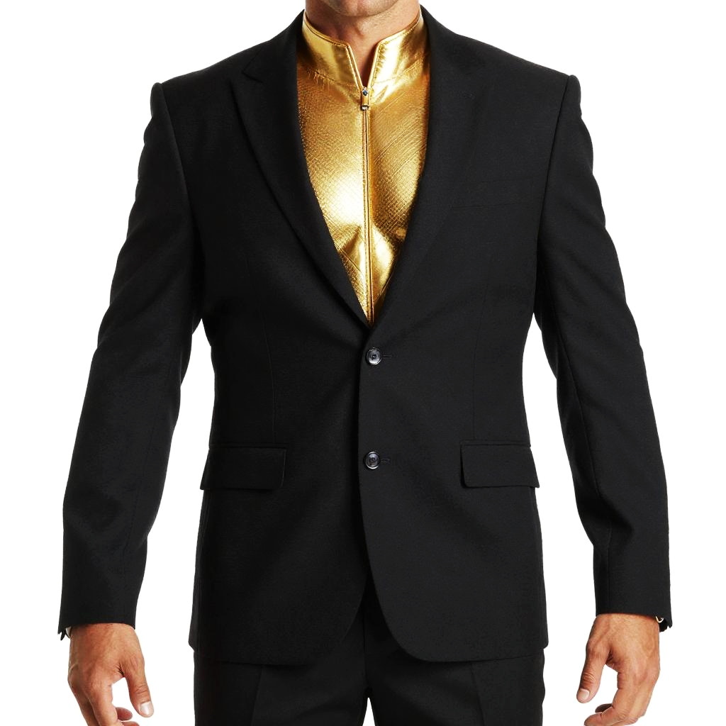 Man in Black Suit with Gold Chest
