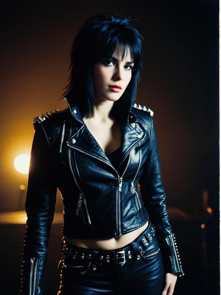 Woman in Joan Jett Style Leather Outfit