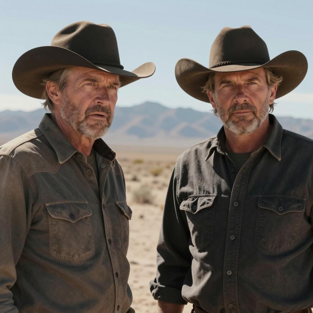 Photograph of a middle-aged man with light brown hair, wearing a beige jacket over a black shirt, carrying a shotgun over his shoulders with a black hat on the barrel. Background is blurred greenery. Man's expression is neutral, slightly smiling. Sunlight illuminates the top of his head.