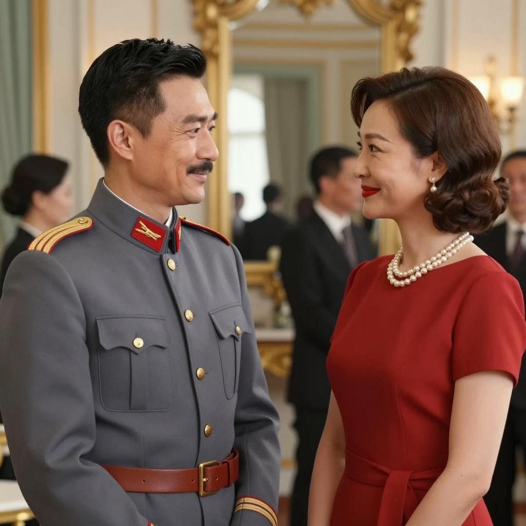 Group photo of 12 people on a wooden deck with a striped canopy. Men wear suits, hats, and ties, some with bow ties. Women in dresses, hats, and accessories. Seated in wicker chairs, standing in front. Rocky hill background. Various facial expressions, some smiling, some neutral. Mixed ages, 5 men standing, 4 women seated, 3 men standing in back. Sunlight casting shadows.