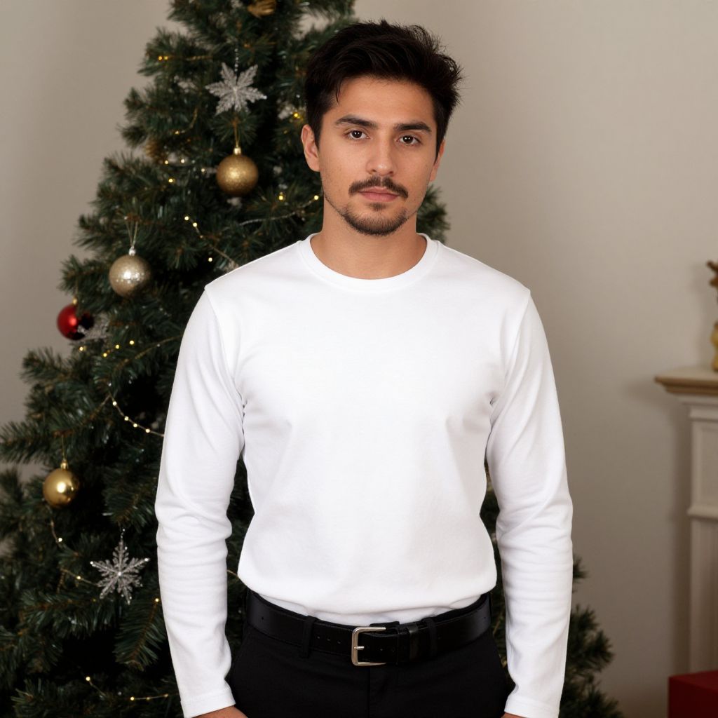 "reformation costume, 1boy, male focus, solo, facial hair, black hair, standing, beard, looking at viewer, mustache, long sleeves, full body, indoors Realistic photo of casual sexy person with pretty face"