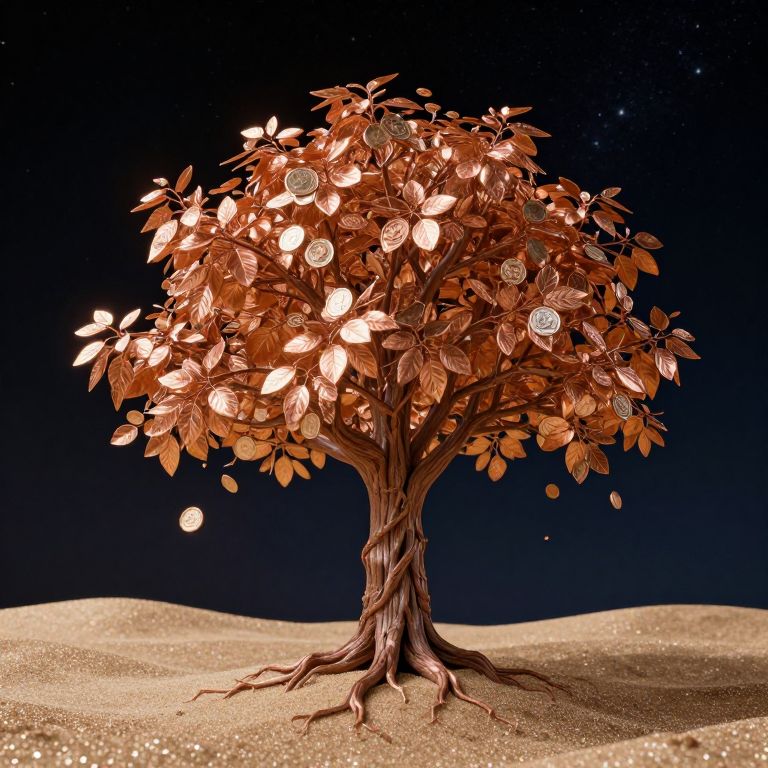 A highly detailed, gold Chinese money tree with leaves made of gold coins, set in a planter, exuding a fantasy art vibe with Disco Diffusion style, perfect for Chinese New Year.