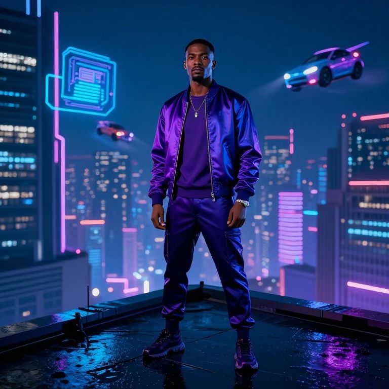 Dystopian Metropolis with Anime Rebel