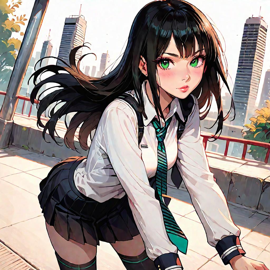 Anime Girl in School Uniform Outdoors