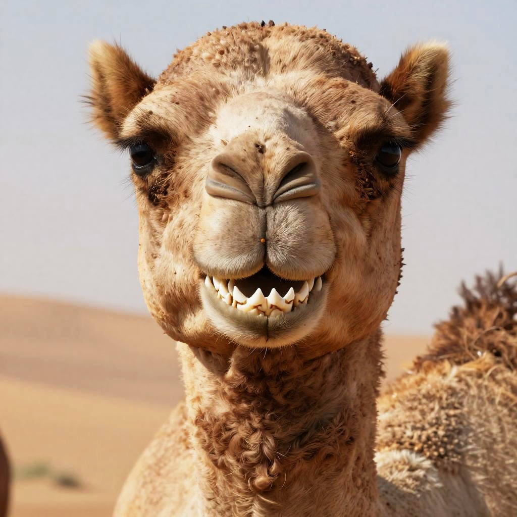 Detailed Close-Up of Sharp Camel Teeth