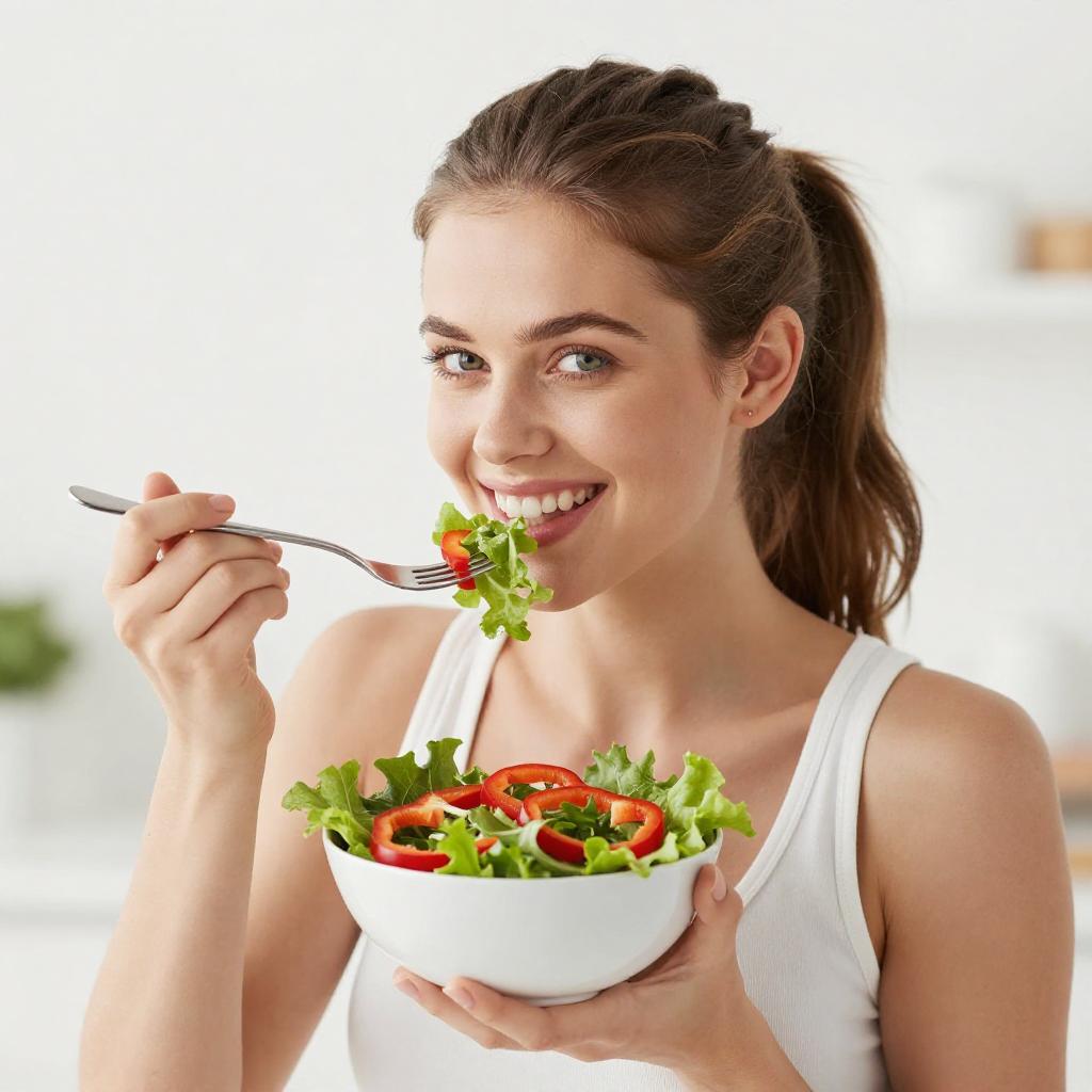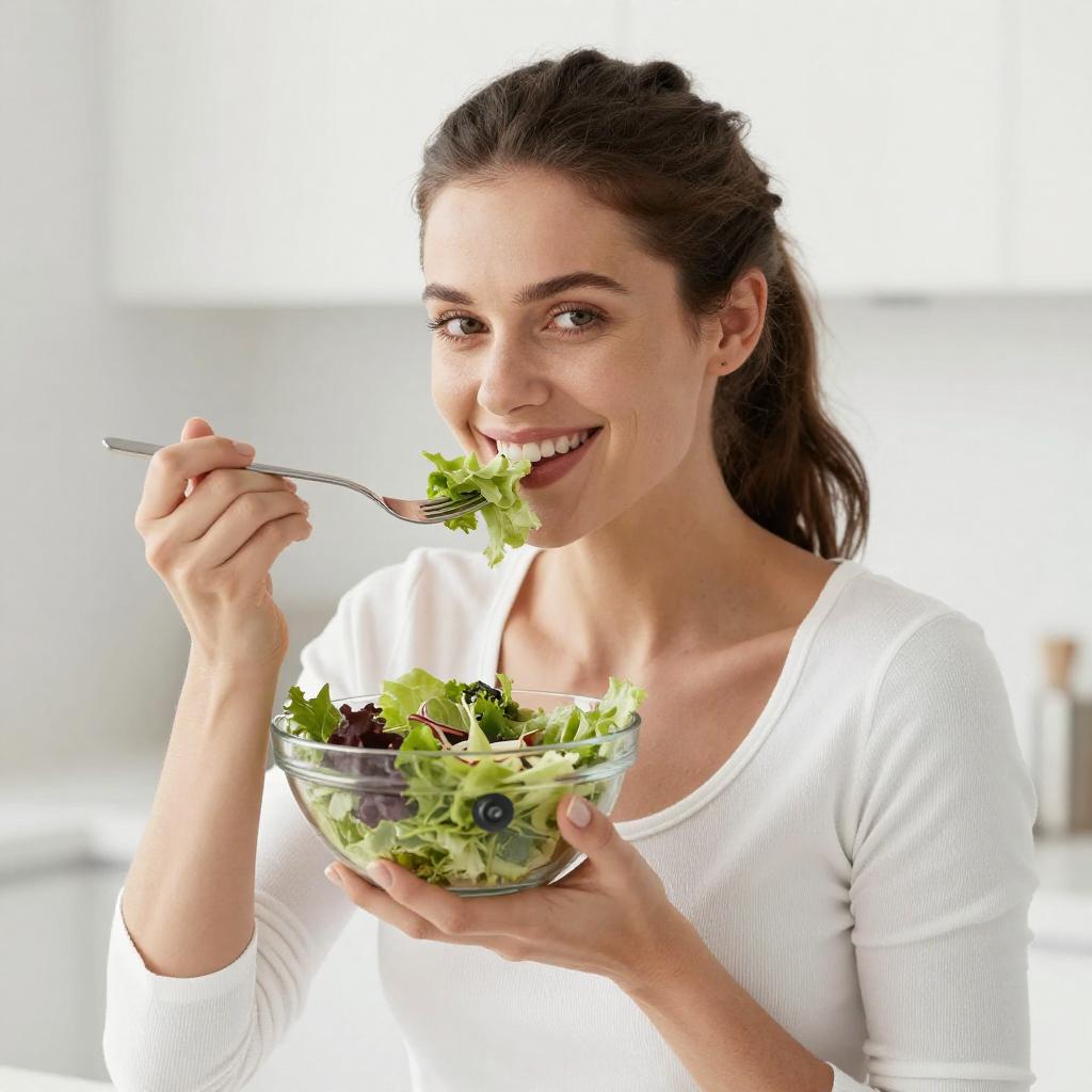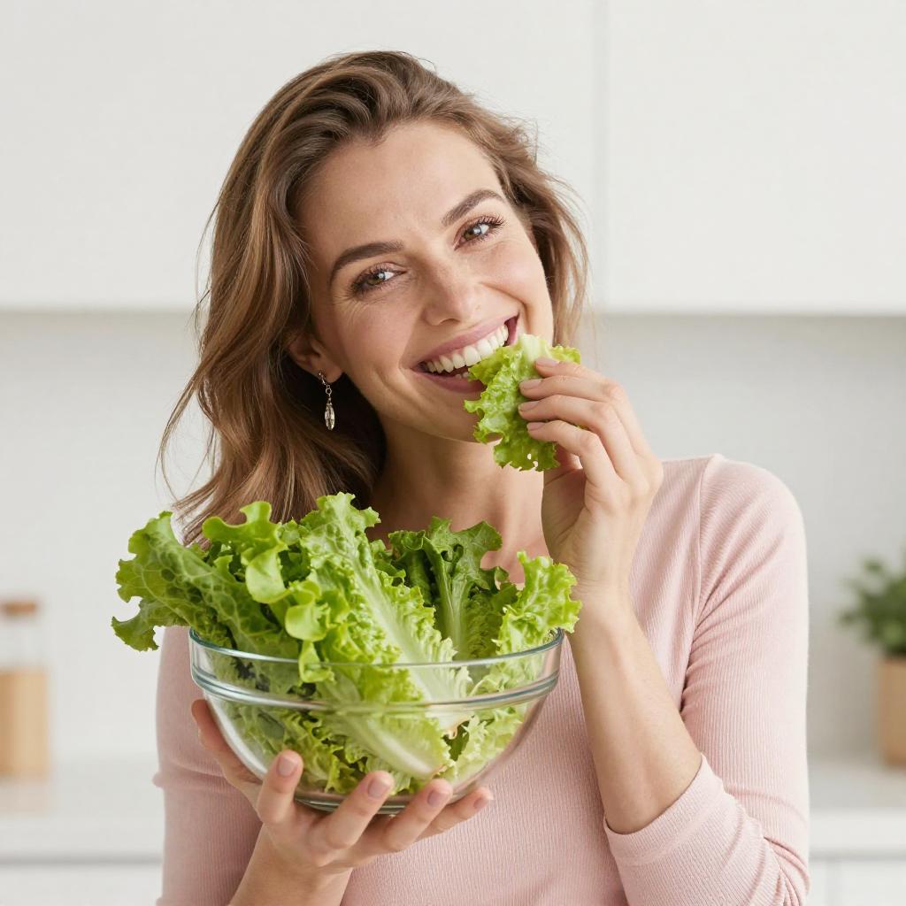 Smiling Woman with Green Apple Close-Up