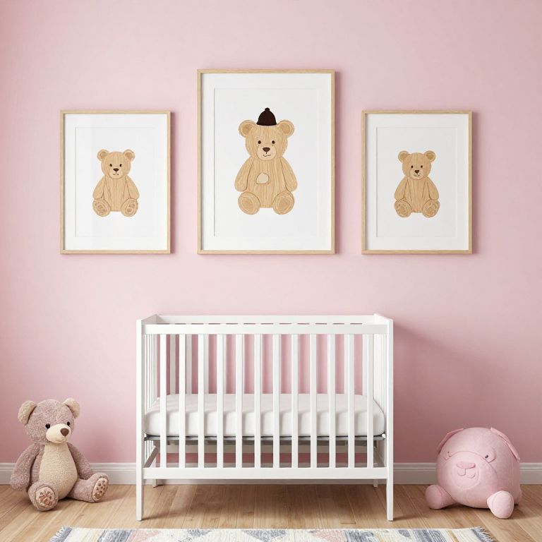Pink baby room ideas with wall art and wooden theme
