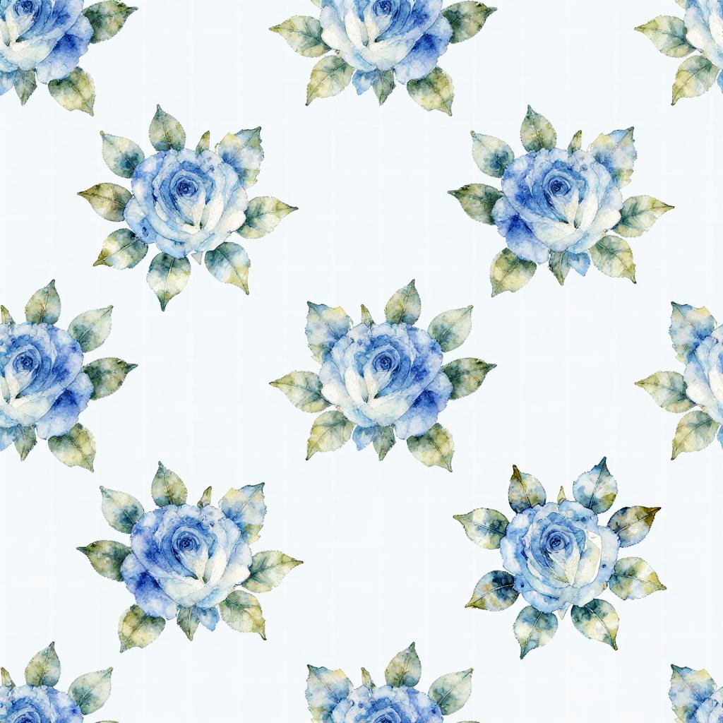 Delicate Blue Rose Watercolor Pattern