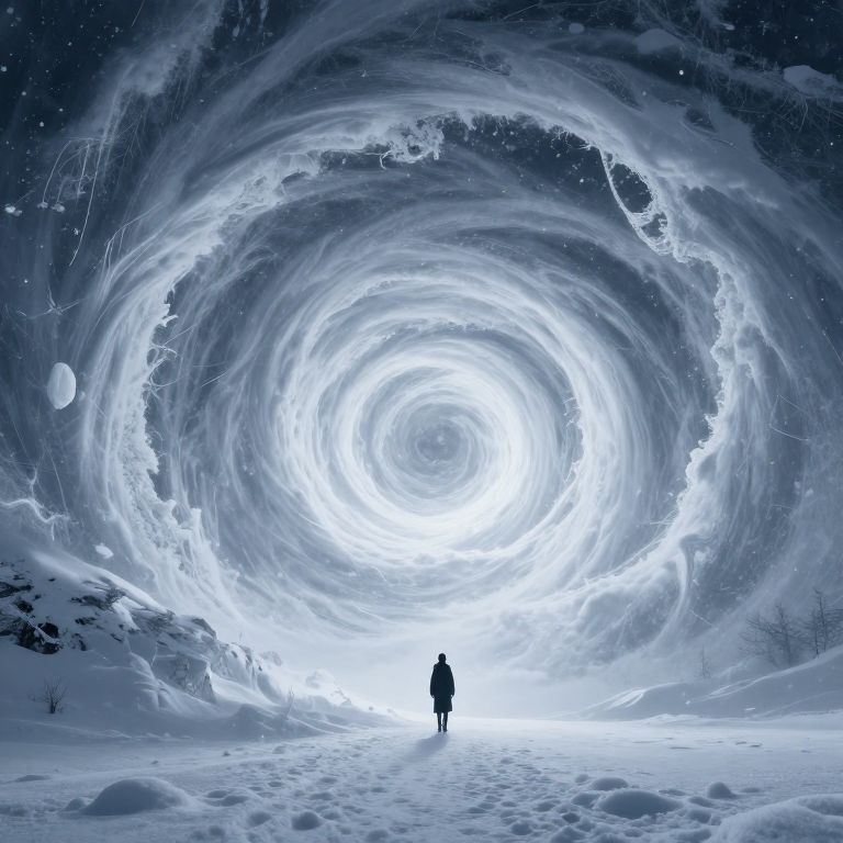 In a bustling urban street where reality bends, a swirling vortex looms overhead, drawing the gaze of a crowd of cyclists whose shadows stretch impossibly long, defying the laws of light and gravity.