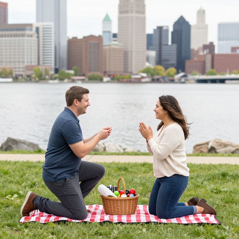 Downtown Plymouth, Michigan Surprise Spring Picnic Proposal | Larry & Julie