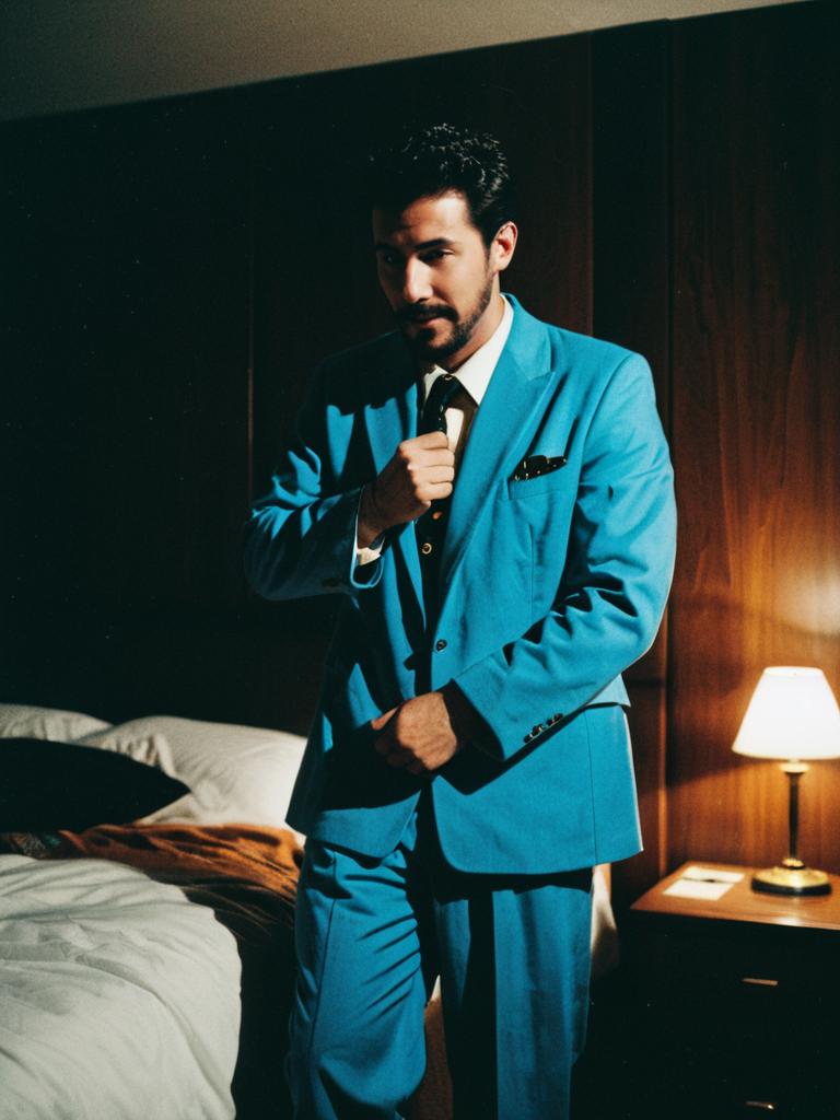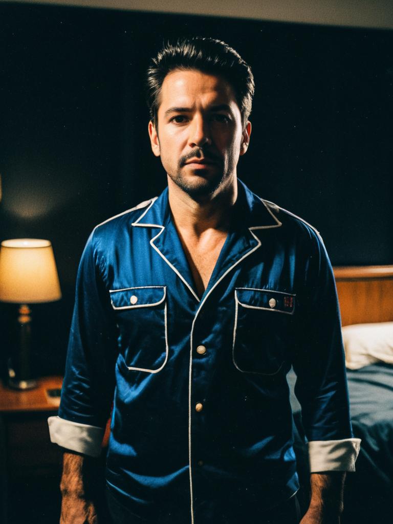 Man in One Night Stand Costume, cinematic realism, playful editorial photo