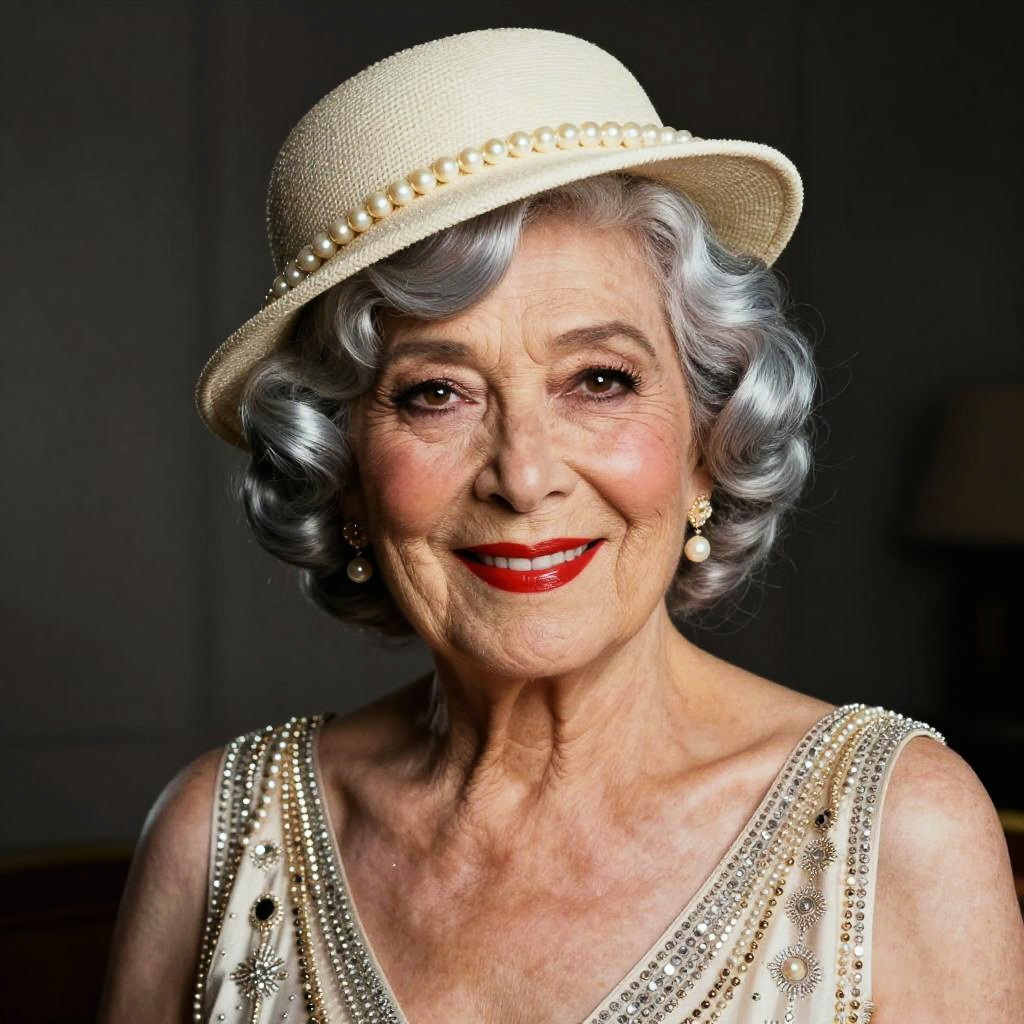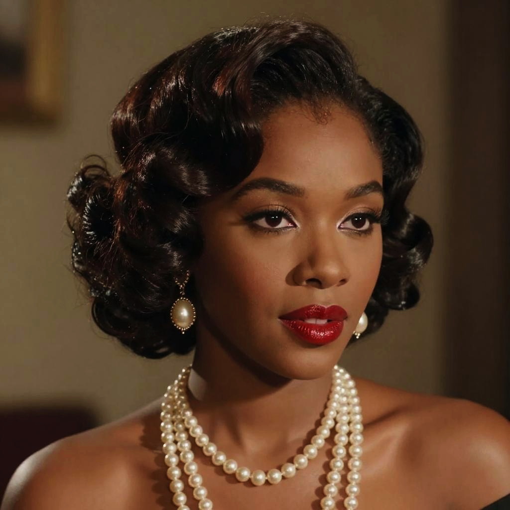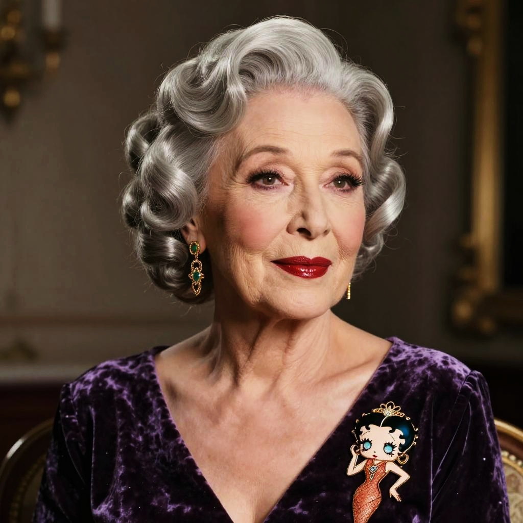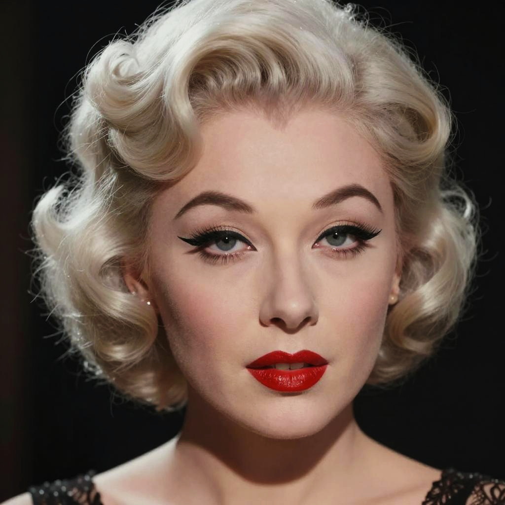 Ultra-realistic portrait of an androgynous vaudeville performer with dramatic eyeliner styled as Betty Boop, shot on a DSLR, cinematic lighting, high detail, soft skin texture, glossy red lips, 1920s vintage aesthetic, inspired by Man Ray, cinematic portrait.
