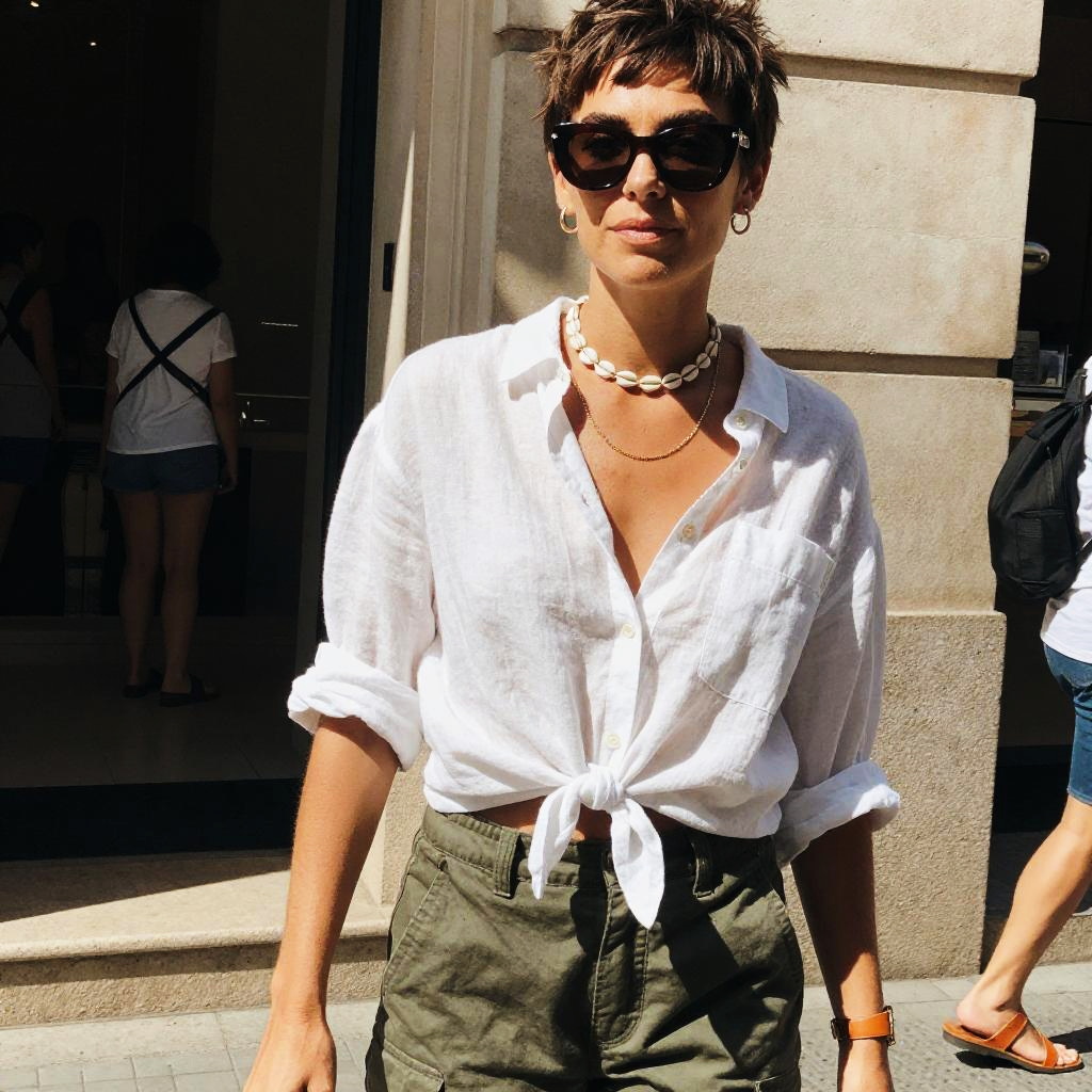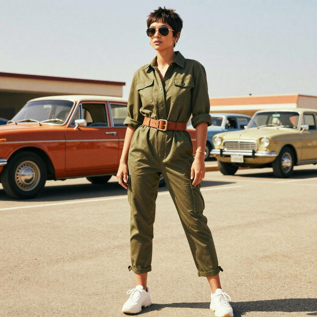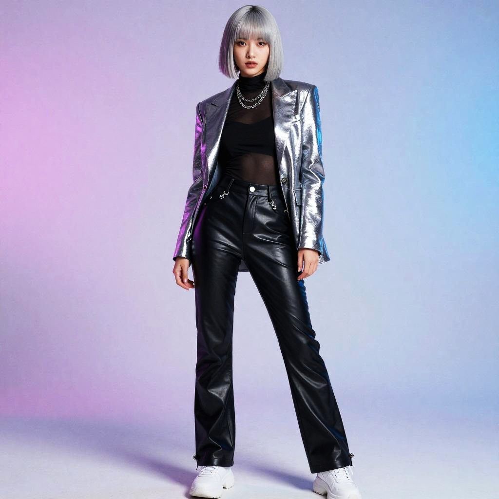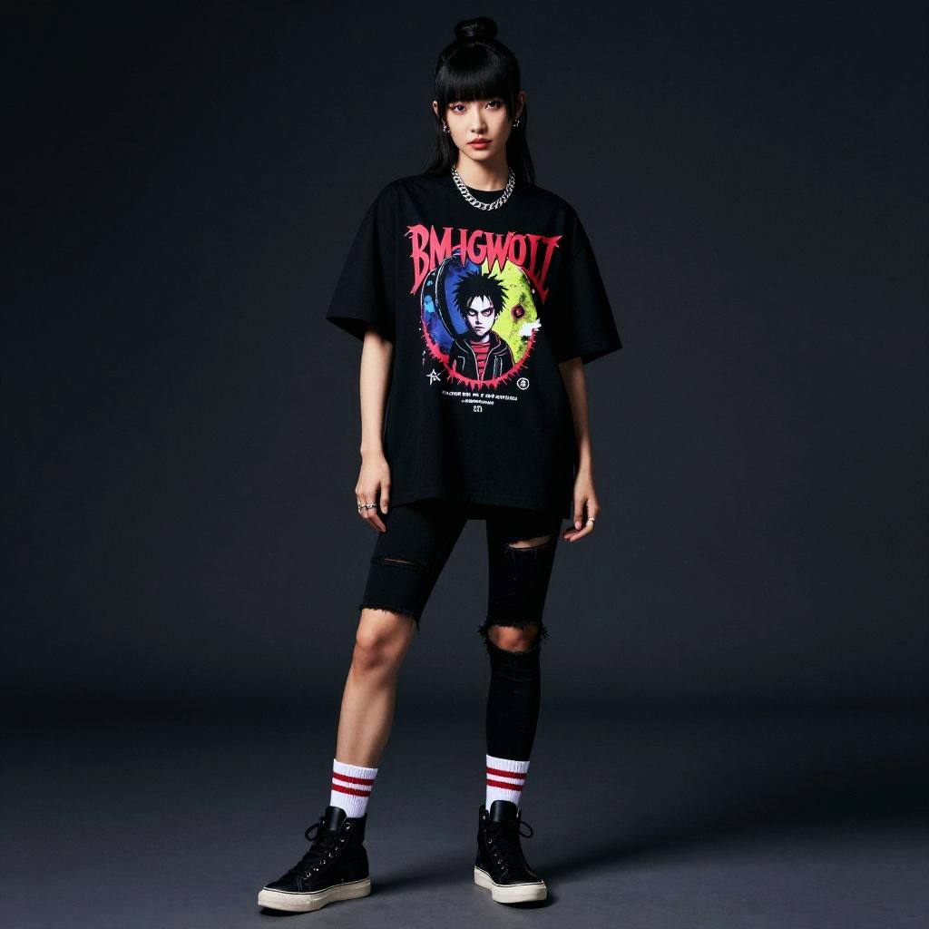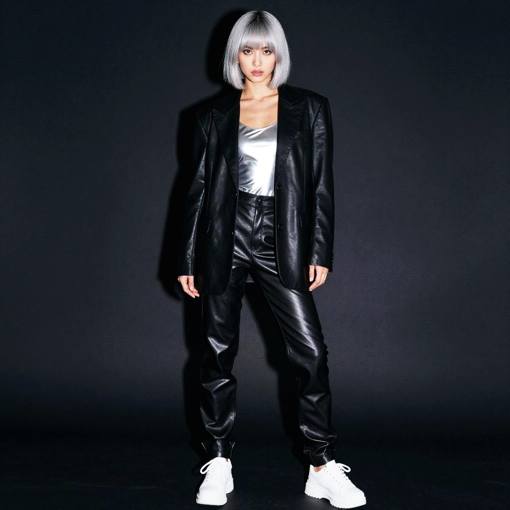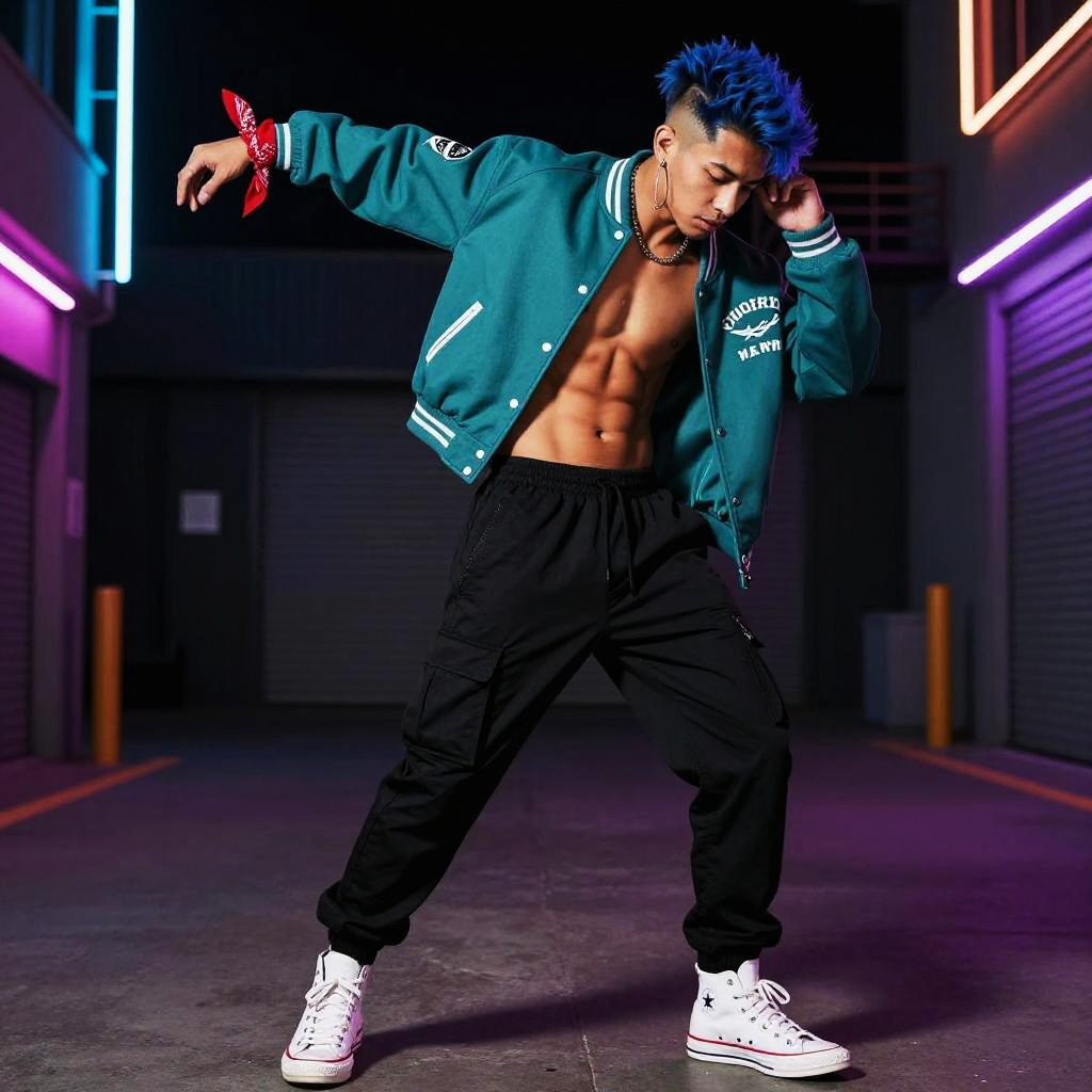 Fitness influencer (late 20s), Athletic with defined abs and toned legs, Sleek high ponytail with braided undercut, douyin outfit, neon coral sports bra under a black mesh cropped hoodie, charcoal high-waisted biker shorts, white chunky trainers, neon scrunchie, slim silver fitness tracker, neon-lit douyin cinematic with warm film grain