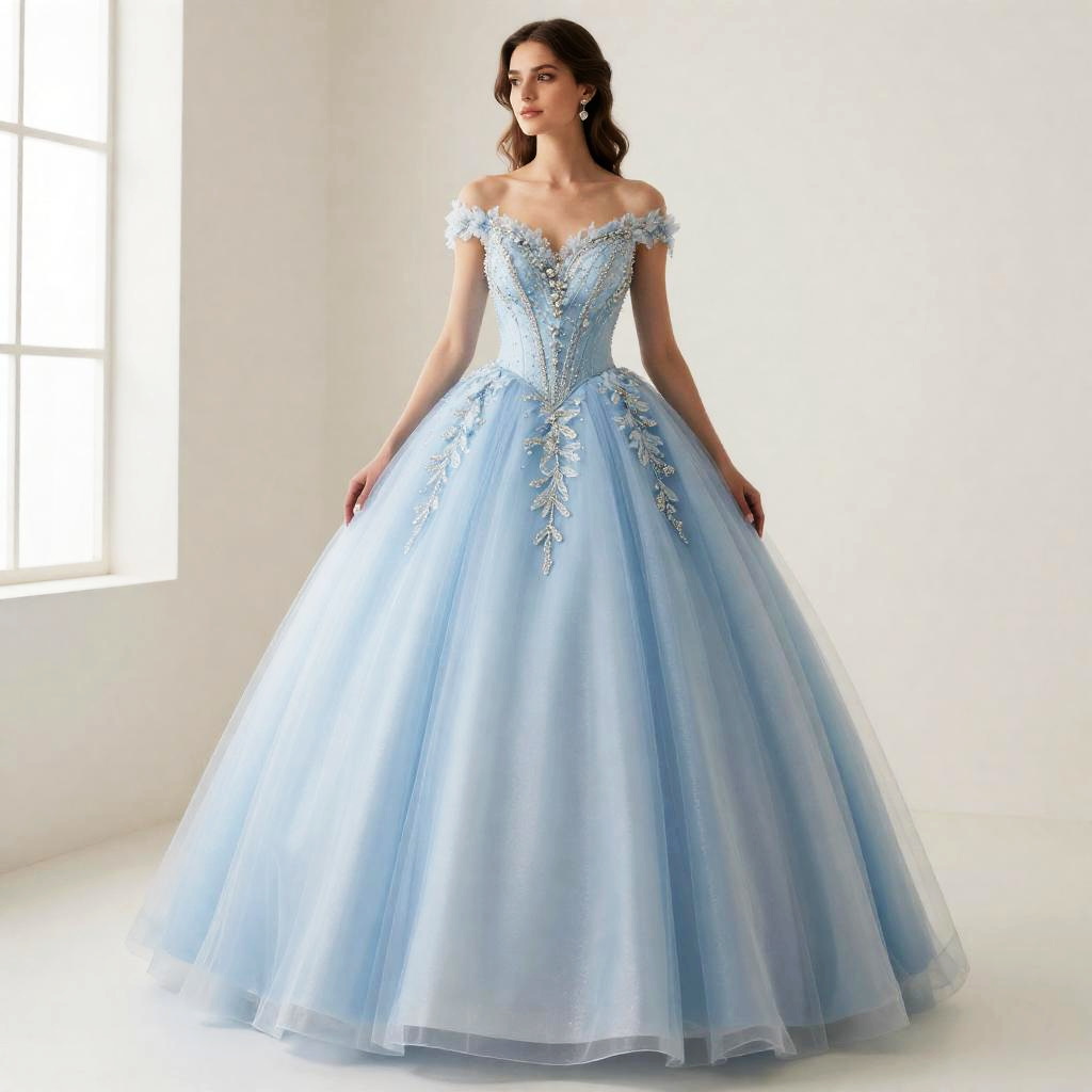 Elegant European Blue Ball Gown
