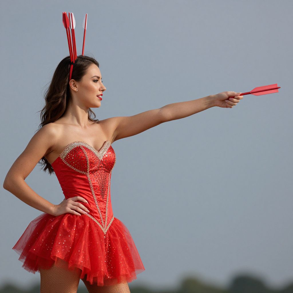 Red Arrows Fancy Dress, image of a woman with arrows pointing to the right