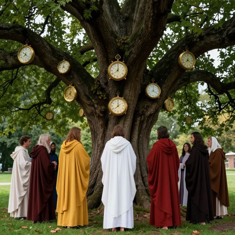 Ritual Beneath Clock-Adorned Tree