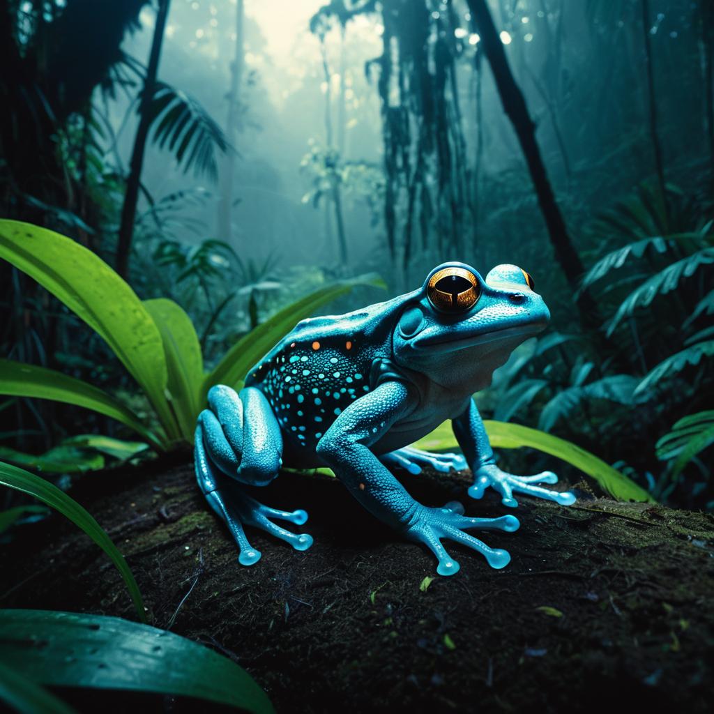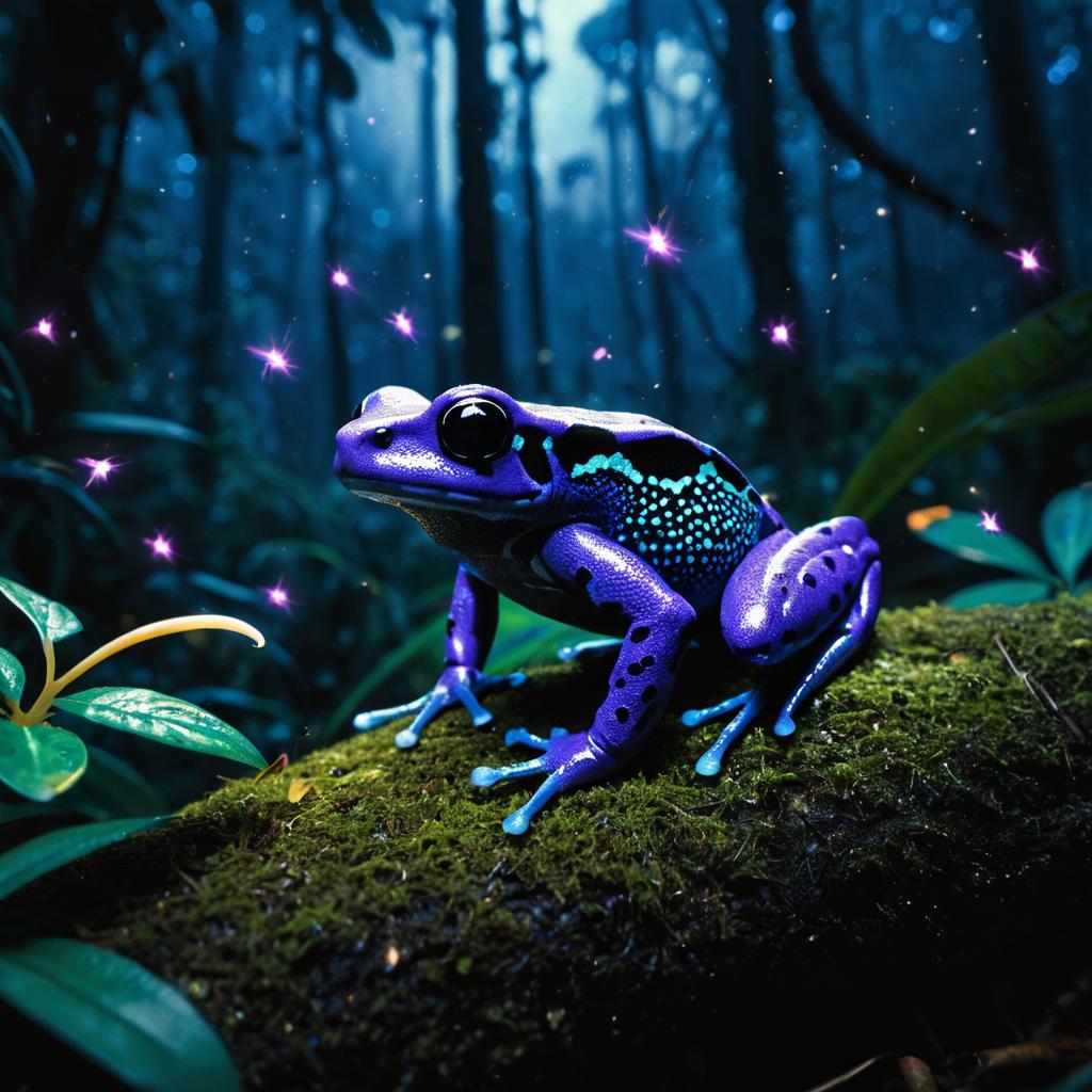 Matte painting of a glowing butterfly, walking in a jungle at night with starry sky in the sky, ayahuasca-inspired, cinematic atmosphere