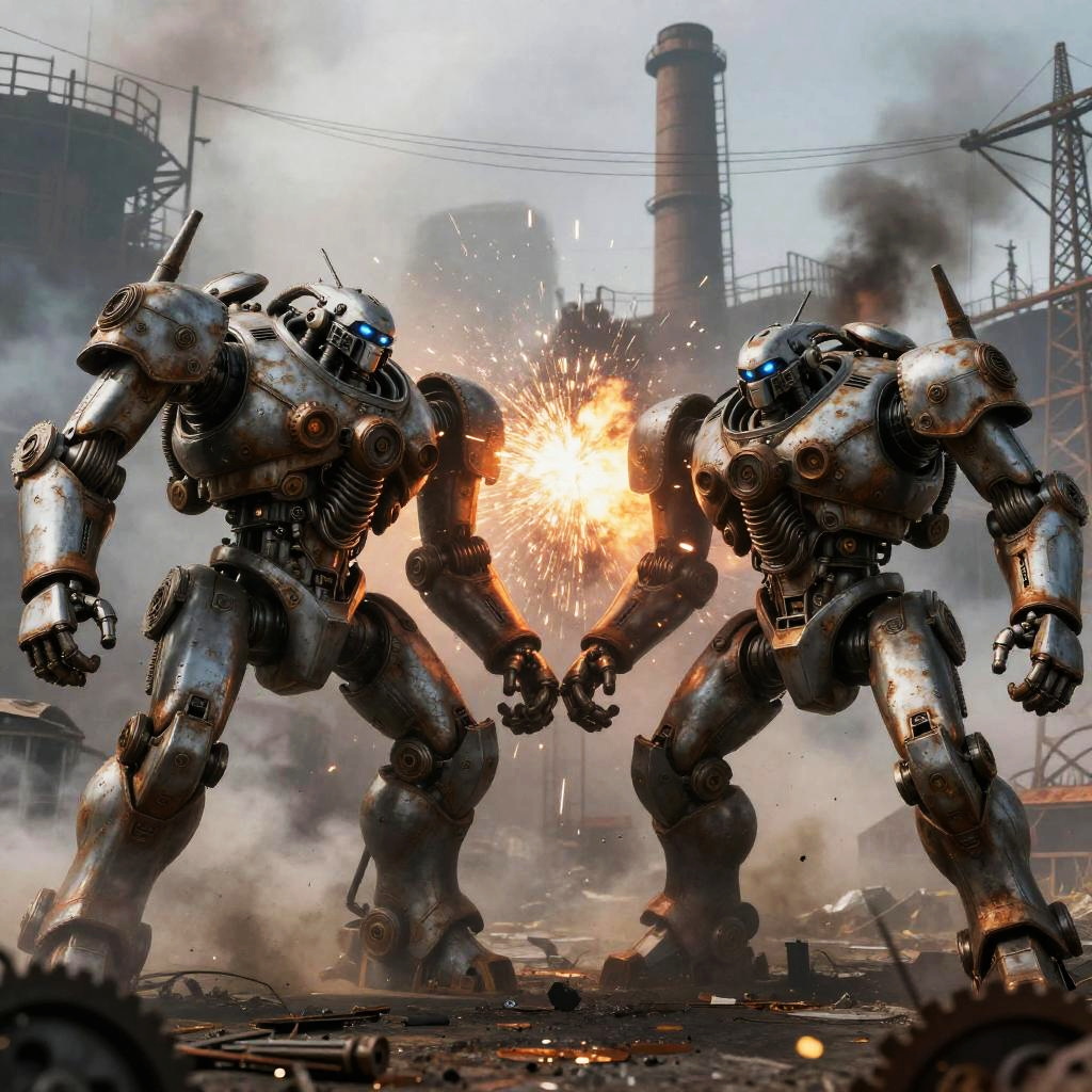 Epic Dieselpunk Mech Battle Scene