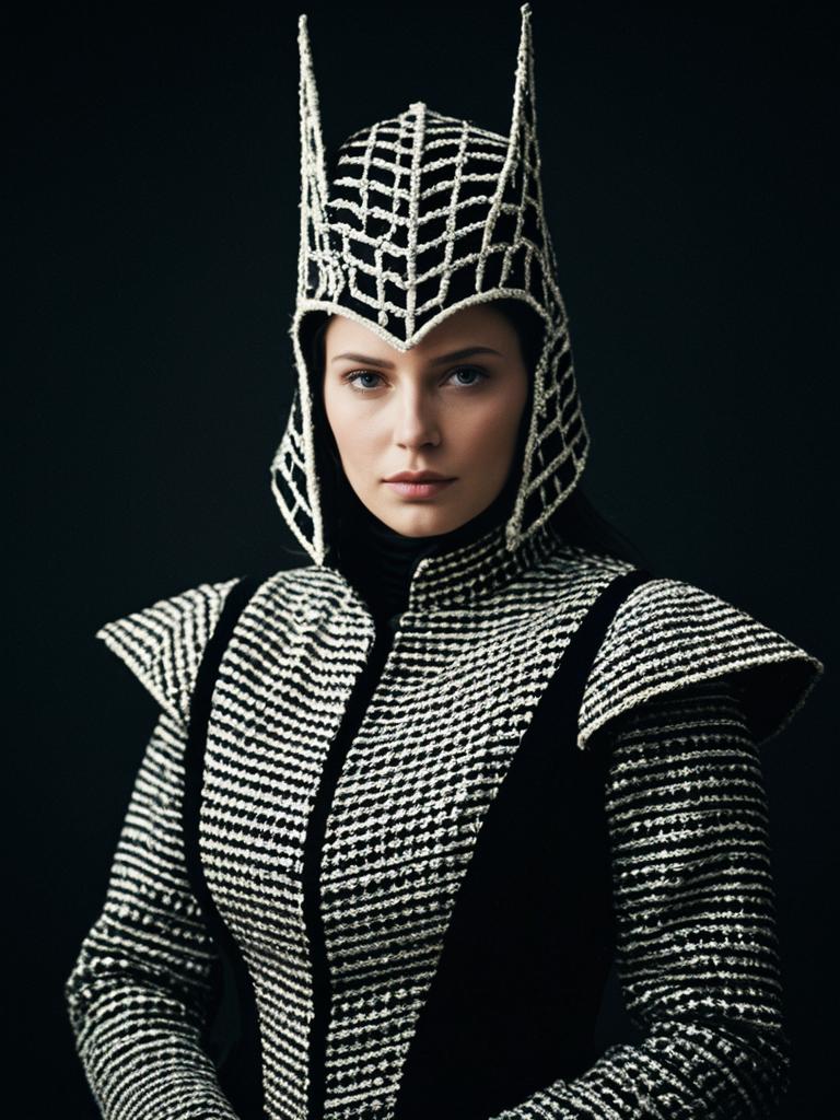 Woman in Costume, photorealistic studio portrait, sharp textures