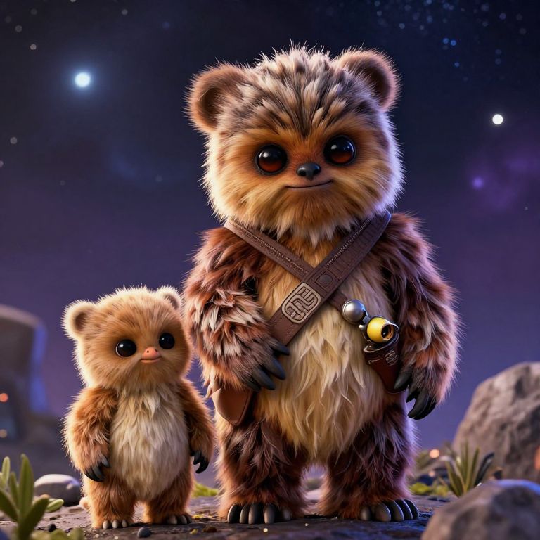 Amidst the cosmic expanse, a playful spirit emerges, embodying the timeless allure of adventure and camaraderie, as the Ewok stands ready to weave new tales of hope and resilience in the galaxy.