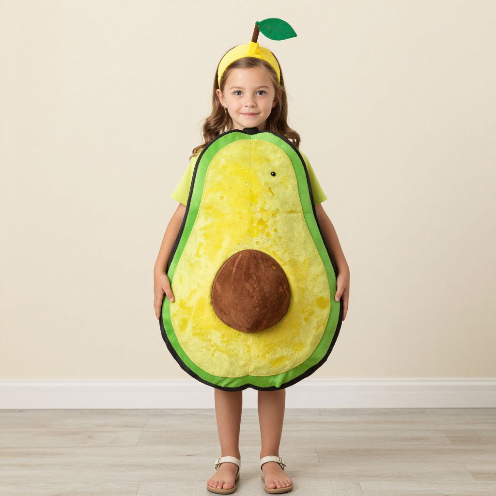 Avocado Costume Adult, young girl wearing a green and yellow costume