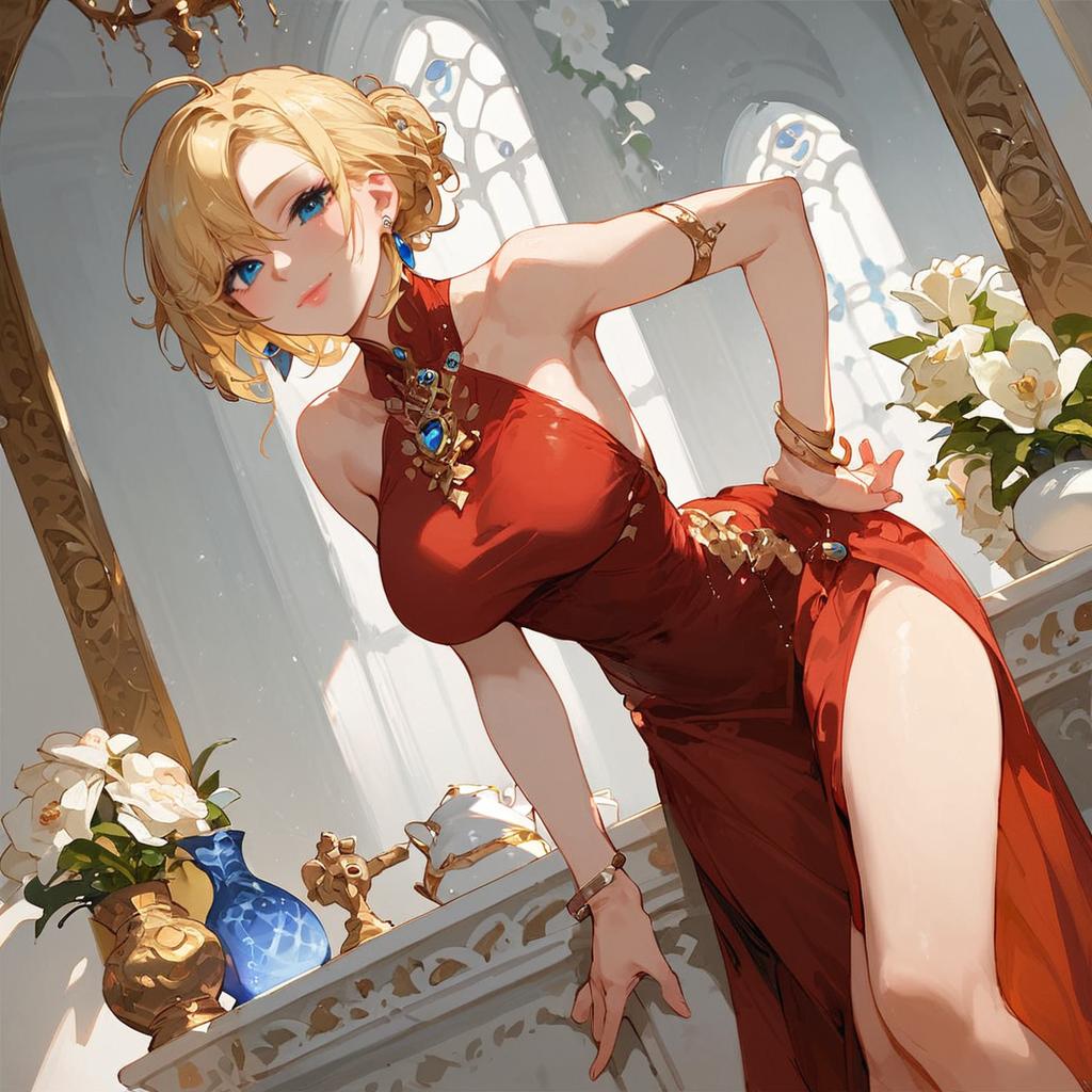 Blonde Anime Girl in Red Dress