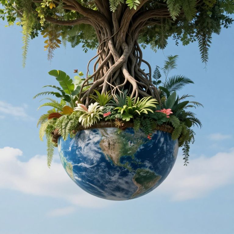 Suspended between earth and sky, this inverted garden whispers a paradoxical serenity, where gravity defies logic and roots reach for the heavens, embodying the eternal dance between grounded reality and boundless imagination.