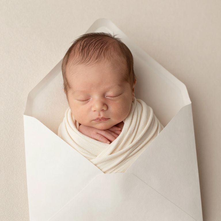 Enveloped in soft hues and gentle textures, the sleeping newborn exudes a profound sense of serenity and innocence, symbolizing the pure potential and tender beginnings of life.