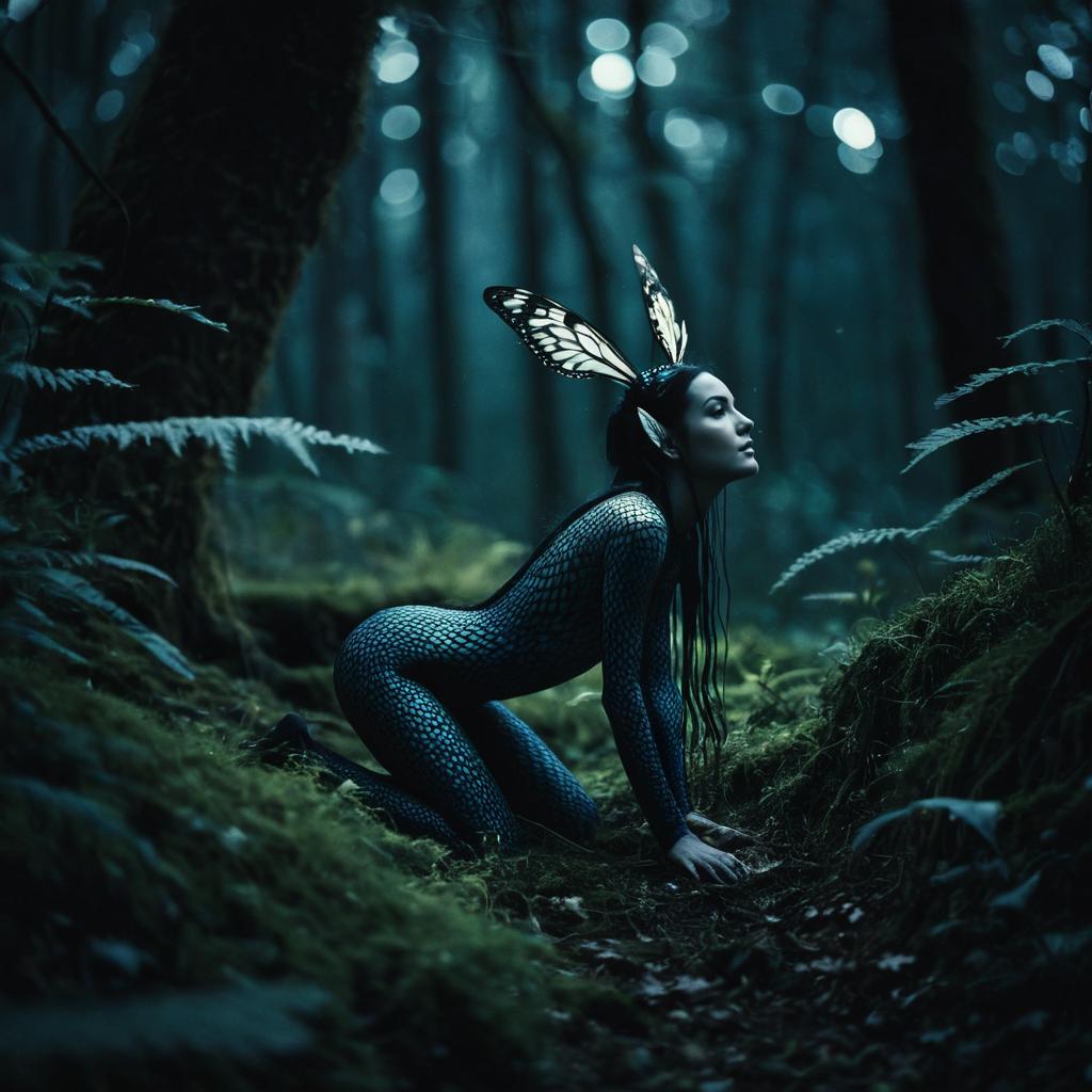 A dragon in a mountain cavern, all set against a softly blurred background that suggests a magical forest.