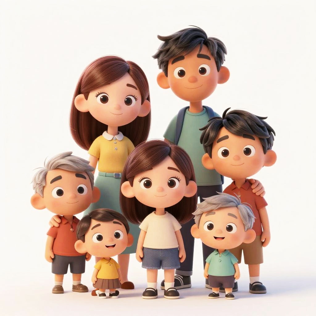 Pixar AI art generator producing a heartwarming family moment with stylized cartoon characters, expressive faces, and soft pastel colors, capturing the magic and emotional depth typical of Pixar films, enhanced by AI-driven artistic effects.