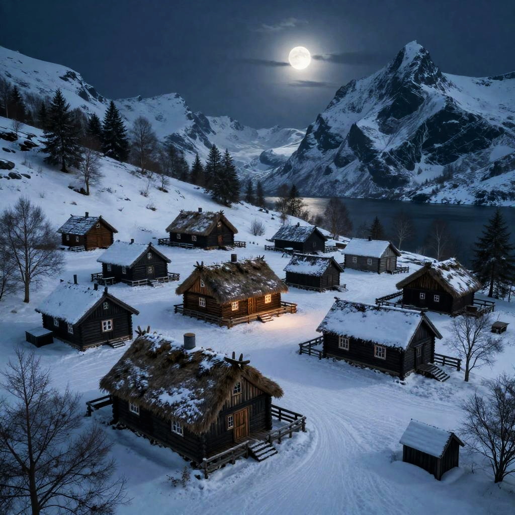 Moonlit Nordic Viking Village in Cirque