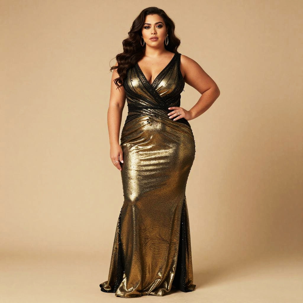 Plus Size Woman in Black Evening Gown