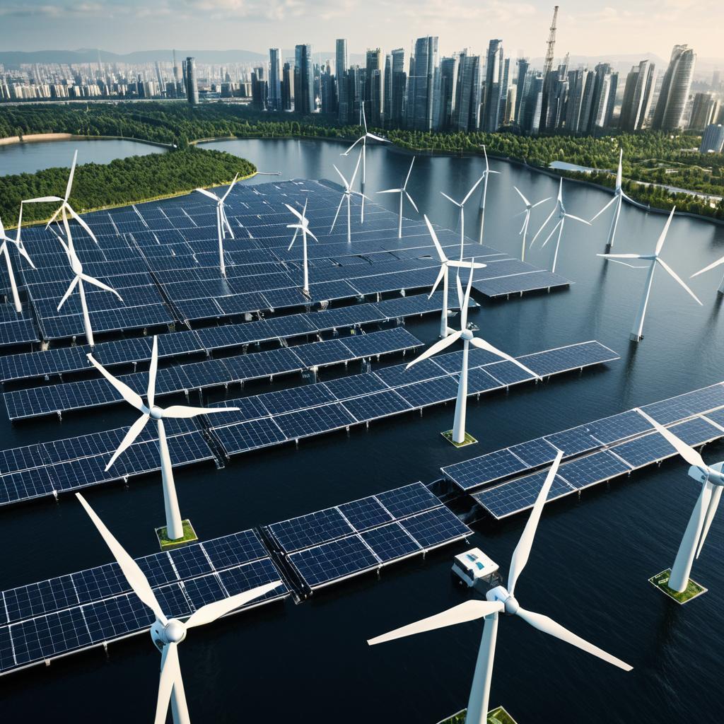 Industrial zone powered by geothermal energy, with automated recycling centers, cold white artificial lighting, futuristic concept art