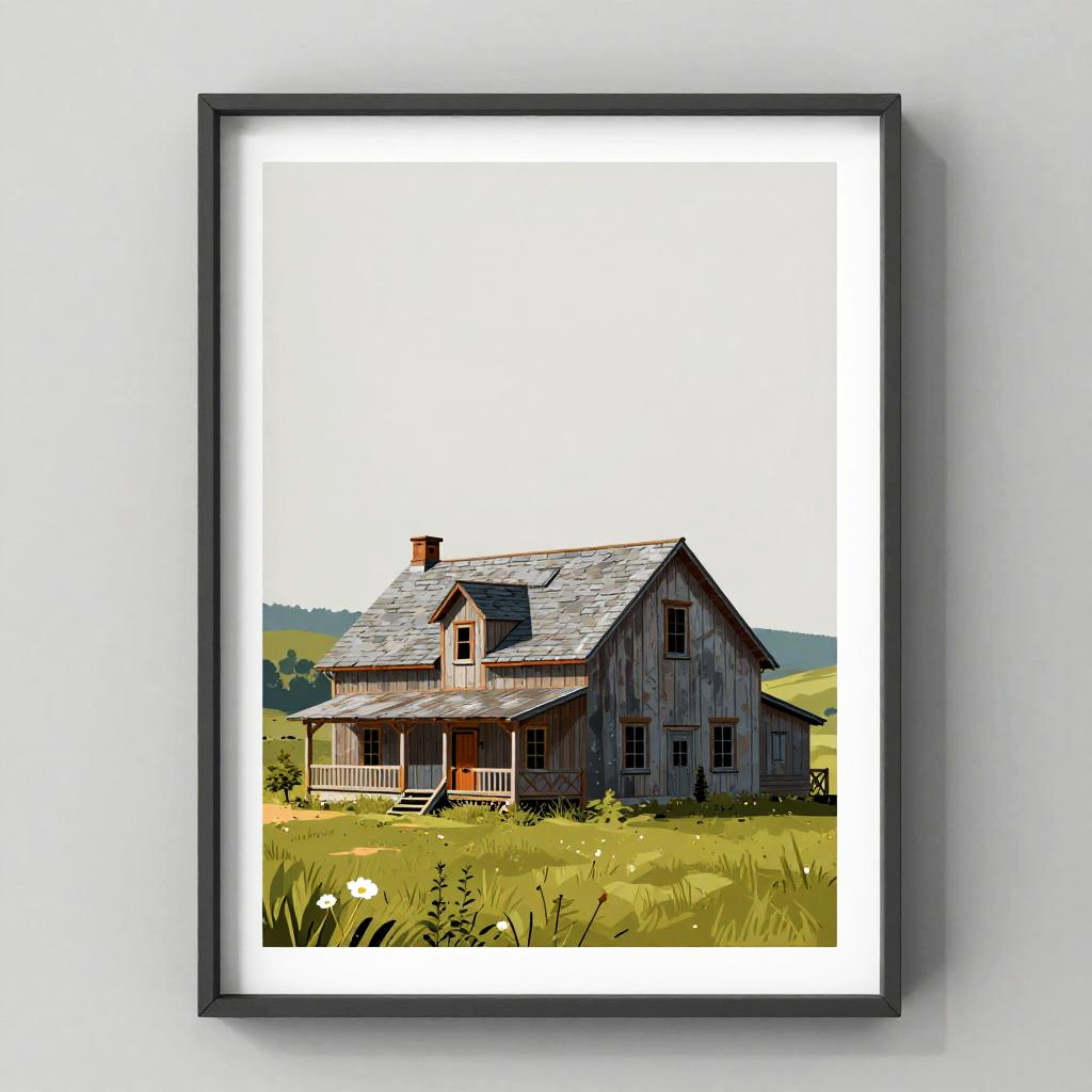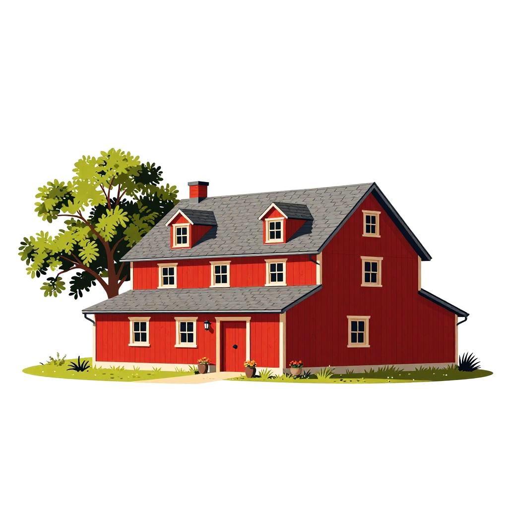 Rustic countryside farmhouse, vibrant, sleek vector graphic, printable art, super detailed, hyperrealist, minimalistic, ultra high definition, digital painting, full page, no shading, crisp and sharp, vivid color, unreal engine.
