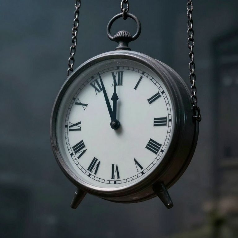 Anchored in midair by chains made of silence, a clock ticks backward, freezing time for all who gaze into its mirrored face.