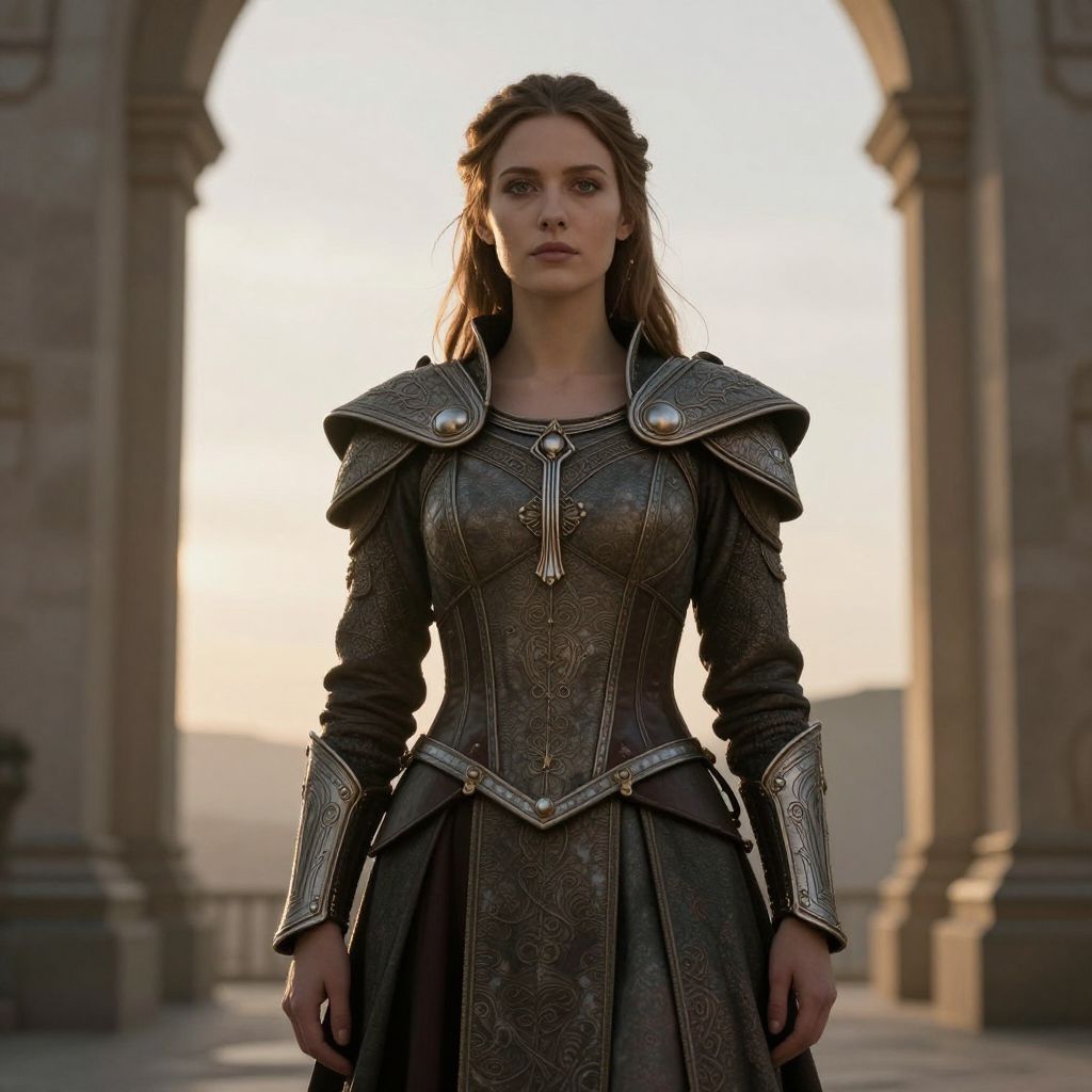 Portrait of natalie portman as a war goddess. 8 k, stunning and beautiful, award winning, highly detailed, extremely delicate armor, beautiful portrait, dramatic, mystical, league of legends style