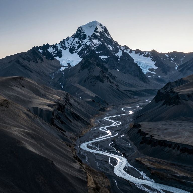Majestic Icy Mountain with Luminous River