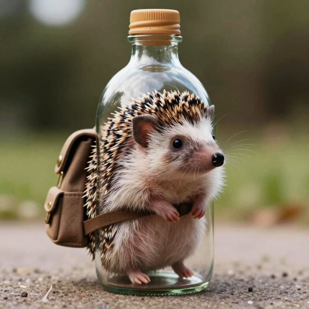 Instagram photo of a chipmunk holding an acorn inside a bottle, humorous and surreal, pastel tones, playful composition, high detail, social media aesthetic