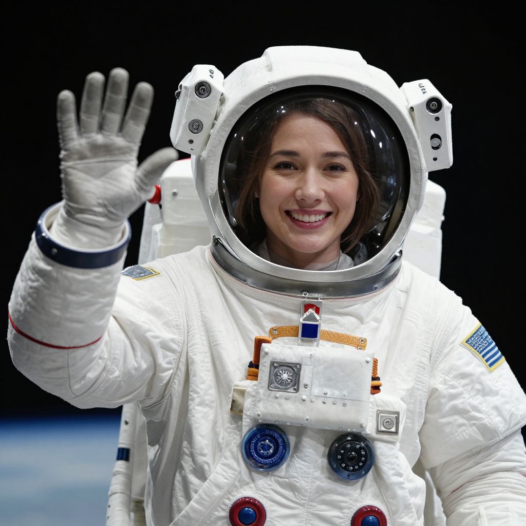 Woman Astronaut in Space Suit Waving