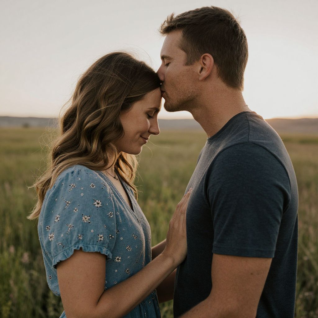 Man Kissing Young Woman on Forehead During Sunset | Mike and Allison's Intimate Engagement Session | Clear Creek, Arvada, Colorado | Farm Wedding Photographer | Apollo Fields Wedding Photojournalism