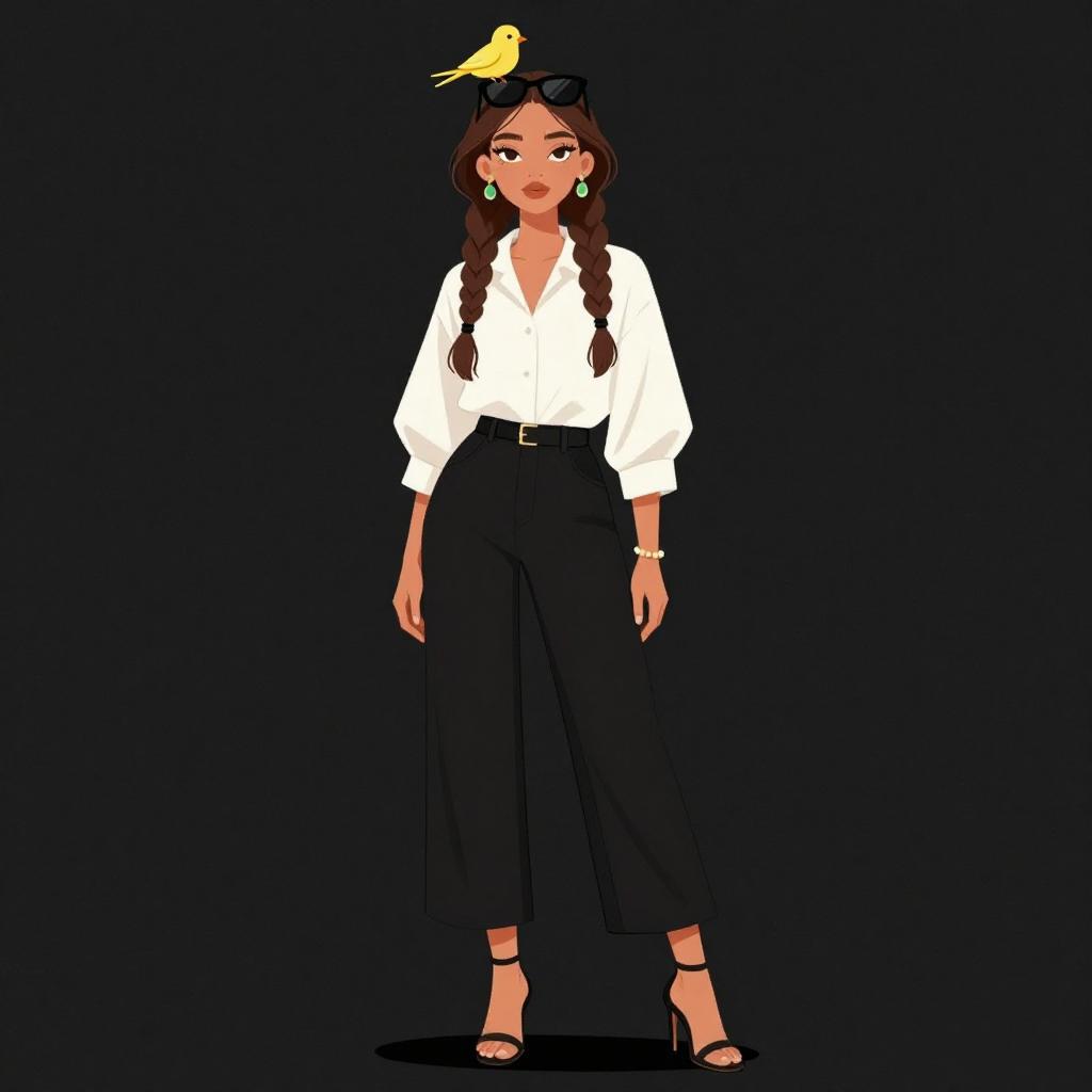 This striking illustration features a fashionable woman exuding confidence against a vibrant urban backdrop. Her elegant outfit and sophisticated accessories reflect a modern, chic style, perfect for editorial use. The soft color palette and dynamic composition emphasize her presence in the city setting.