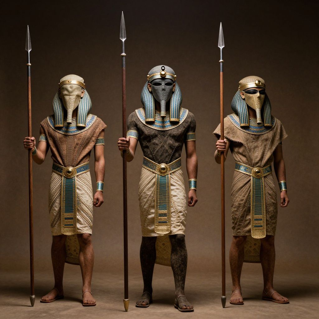 Ancient Egyptian soldiers in traditional attire, holding spears.