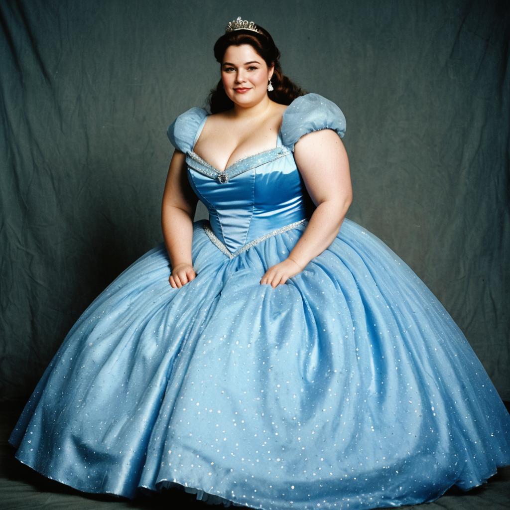 Plus Size Cinderella Dress, a woman in a blue dress posing for a picture