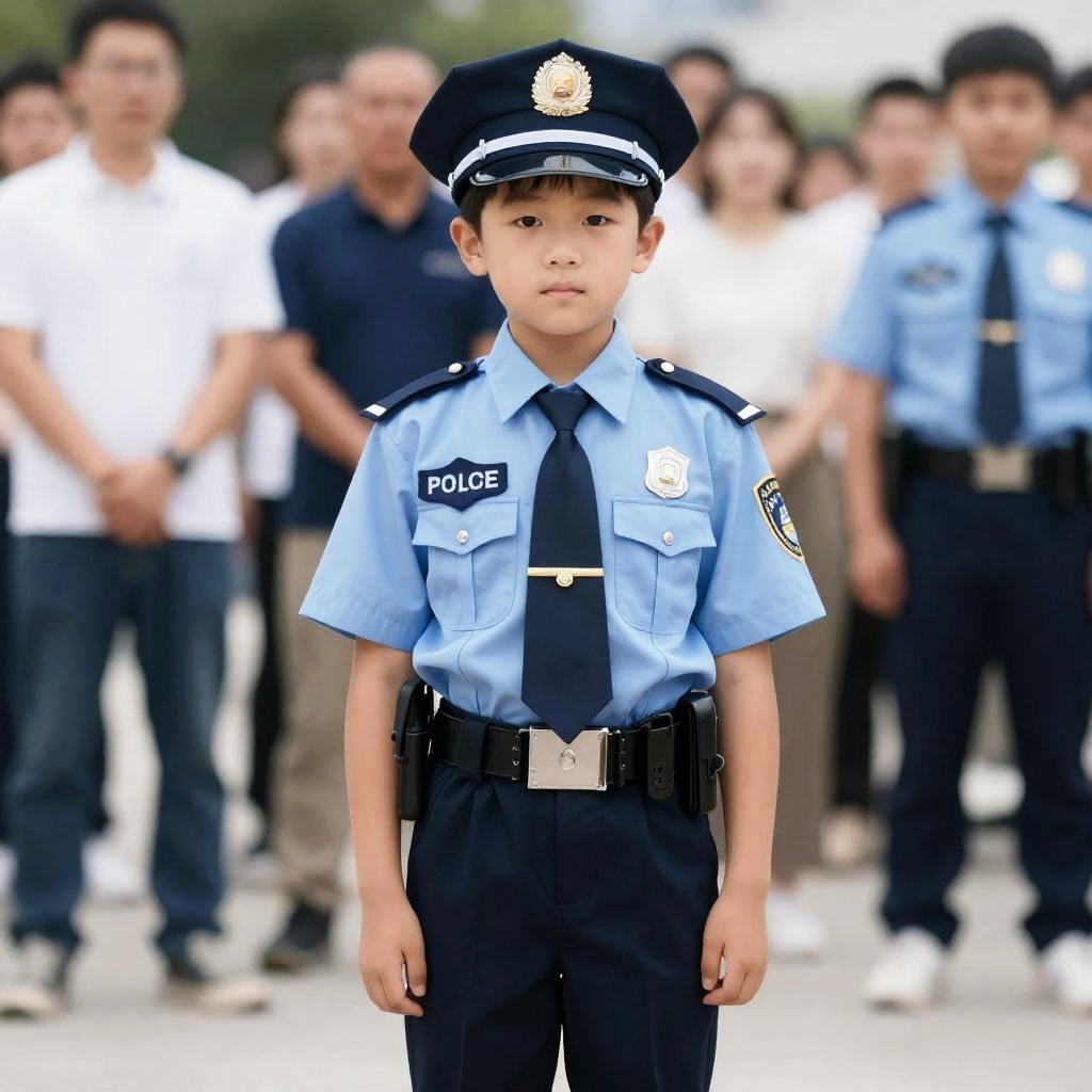 Police Officer Costume Boy, young boy in a uniform standing in a crowd