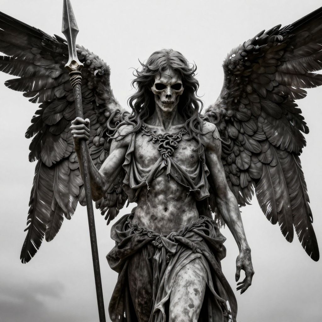 The (Angel) of Death, holding the spear of DEATH, ready to kill the wicked, photorealistic, hyperrealism, highly detailed surreal nightmare, extremely high quality, 8k, sharp, crisp detail