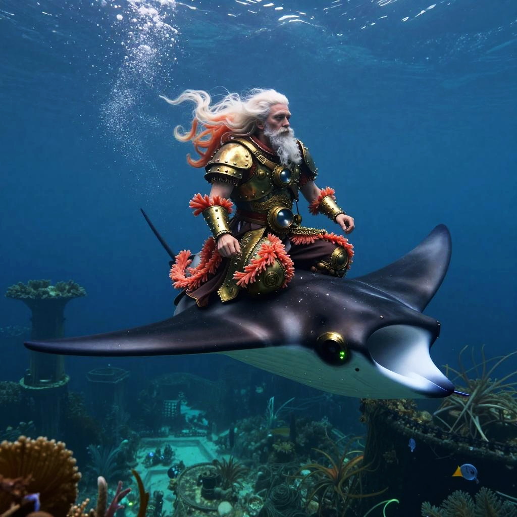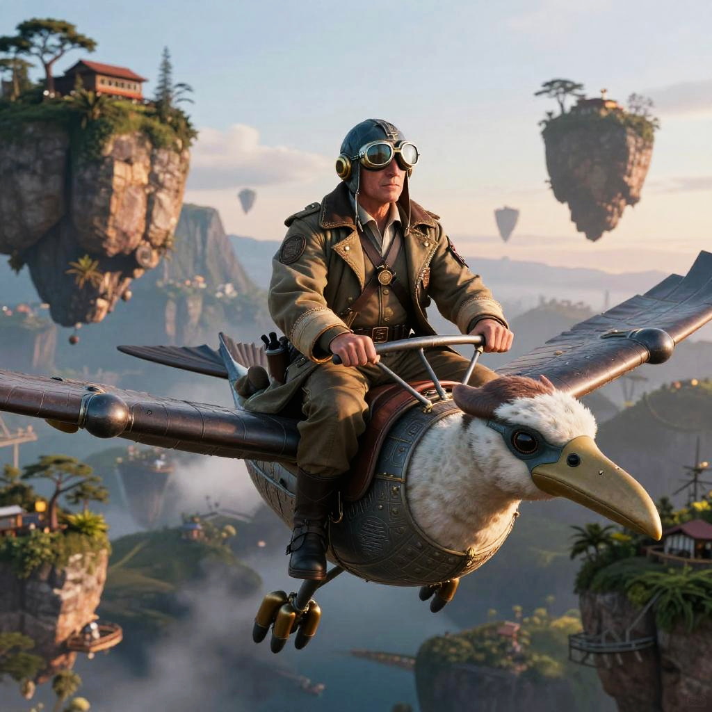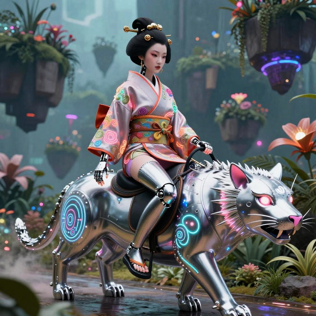 A stoic ronin wearing a worn kimono and hakama with battle scars while riding a giant koi-dragon. Set against a lush misty bamboo grove at dawn background, this scene captures ultra-realistic detail and dynamic lighting, all rendered in stunning 8k quality.